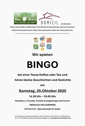 ANMELDUNG ÜBER DAS NACHBARSCHAFTSBÜRO: 0451/4082308 (Gerne auf den AB sprechen)